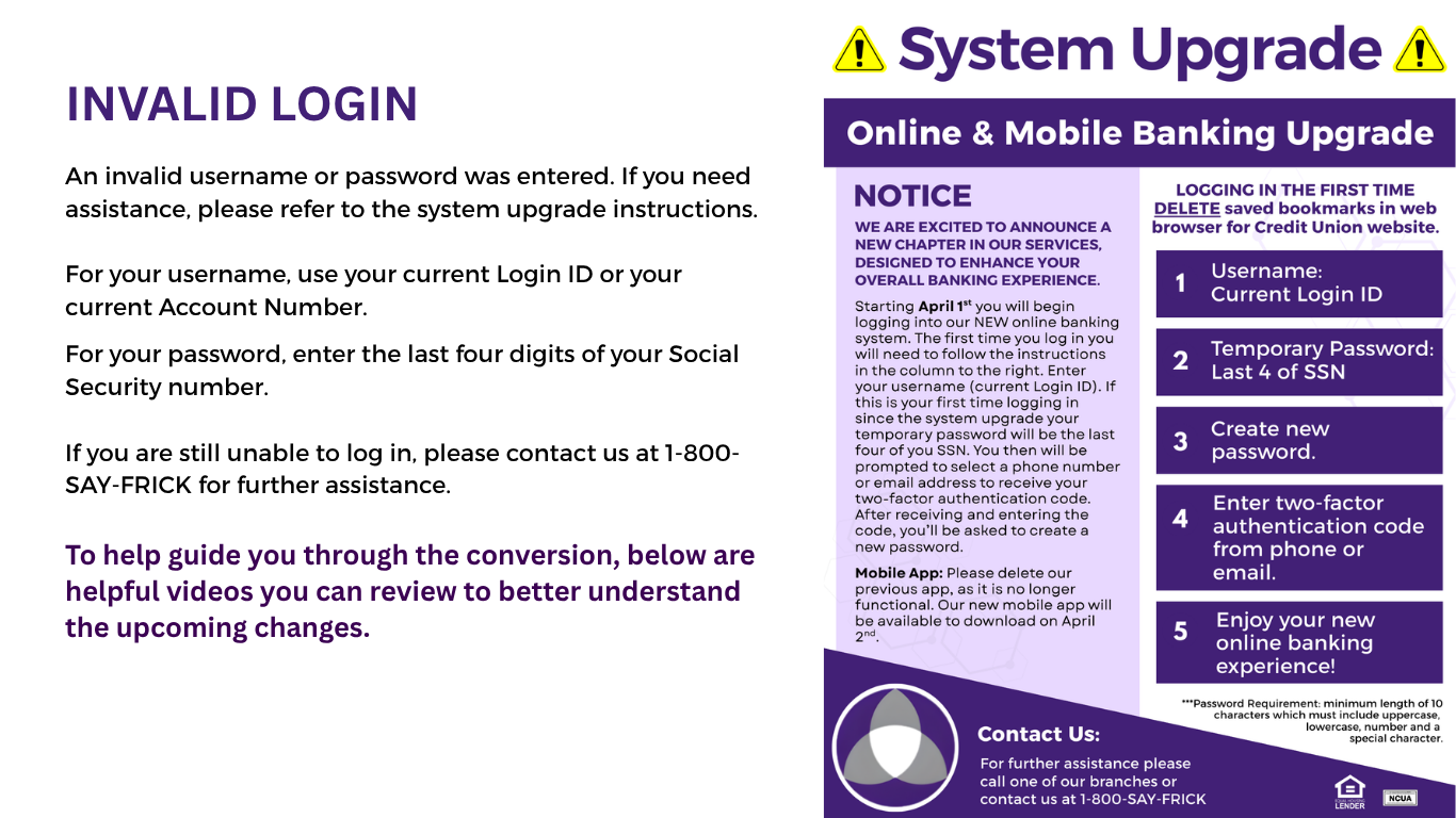 Frick Financial Federal Credit Union is committed to providing a website that is accessible to the widest possible audience in accordance with ADA standards and guidelines. We are actively working to increase accessibility and usability of our website to everyone. If you are using a screen reader or other auxiliary aid and are having problems using this website, please contact us at (724) 438-5123. All products and services available on this website are available at our credit union office.